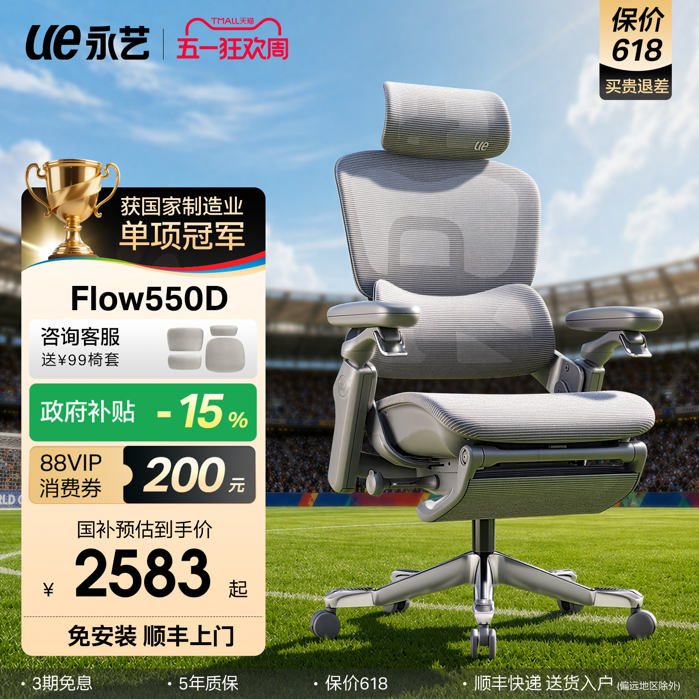 • 泡美丽»»ue永艺Flow550D人体工学椅子电竞椅座椅久坐舒适办公椅撑腰电脑椅