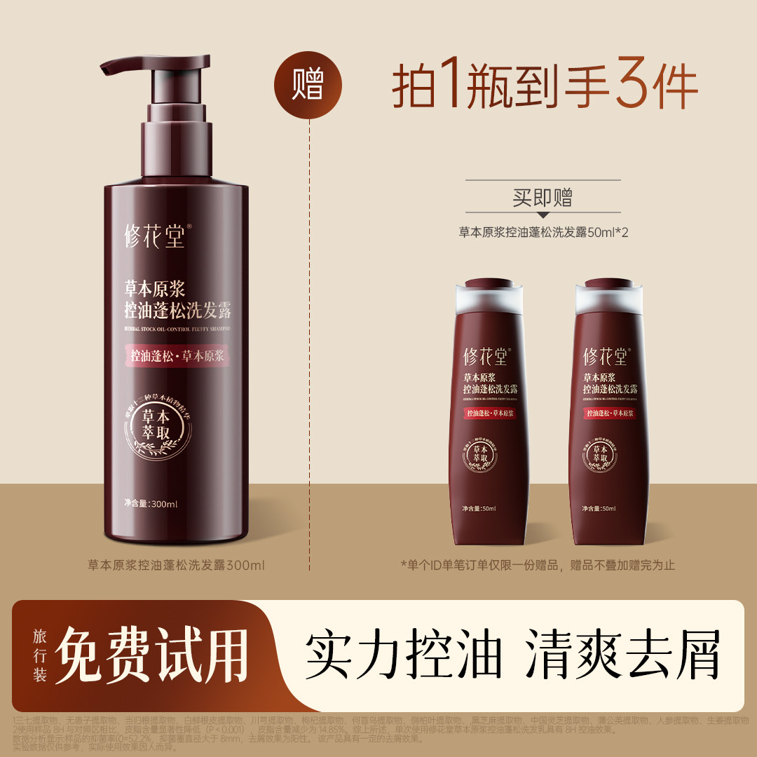 修花堂何首乌植物侧柏叶洗发水控油蓬松去屑止痒官方正品洗发露女