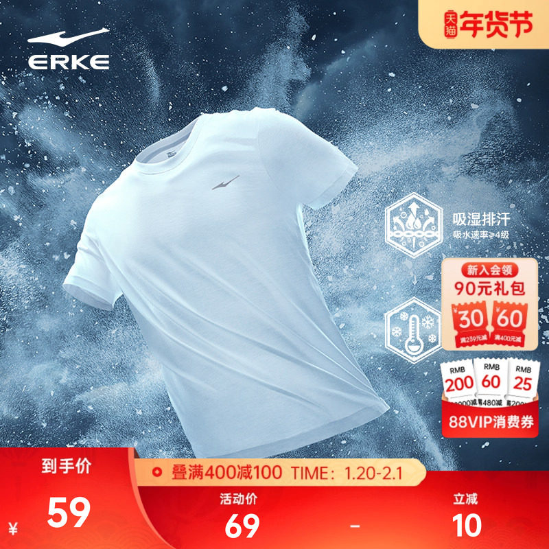 鸿星尔克速干短袖男夏季新款男士跑步冰丝速干衣t恤男生运动上衣