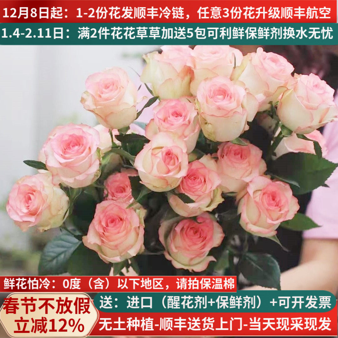 A级爱莎玫瑰鲜花云南昆明市场基地直发直批 发家用水养真花空运粉