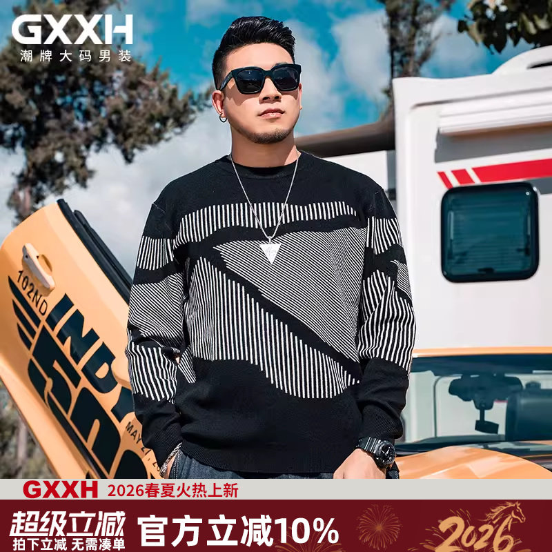 GxxH潮牌大码男装加肥加大号胖子秋冬个性宽松圆领提花毛衣针织衫