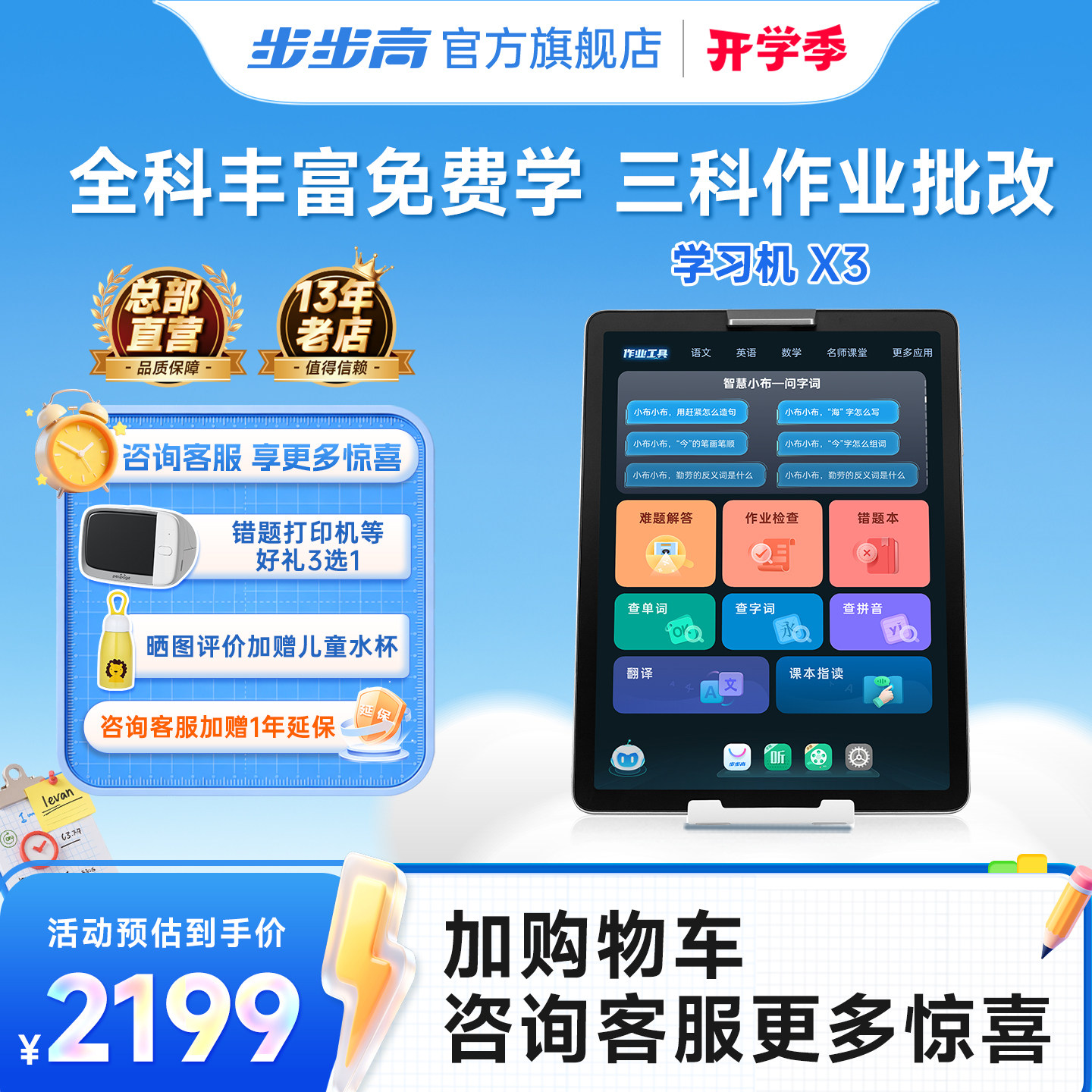 【官方旗舰店】步步高学习机X3学练家教机ai智能批改原题一年级到六年级英语专用小