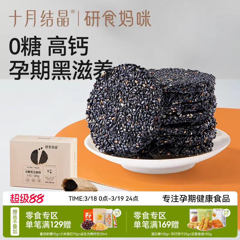 十月结晶研食妈咪无糖黑芝麻饼孕妇零食小吃营养孕期专用黑芝麻片