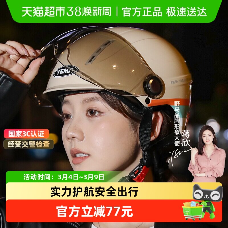 国标野马3C认证电动摩托车头盔男女夏季防晒半盔电瓶车夏天安全帽