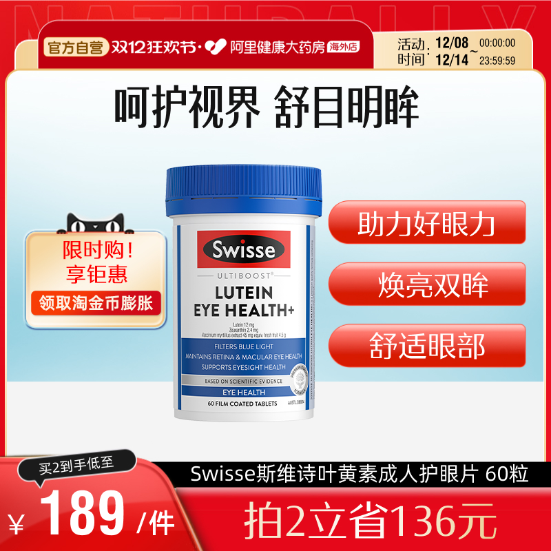 Swisse斯维诗叶黄素成人护眼片玉米黄质越橘蓝莓提取物澳洲进口