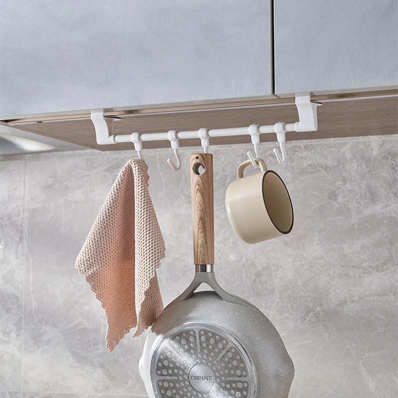 厨房挂钩橱柜下夹板式挂架门后免打孔多功能排钩收纳大全置物架钩