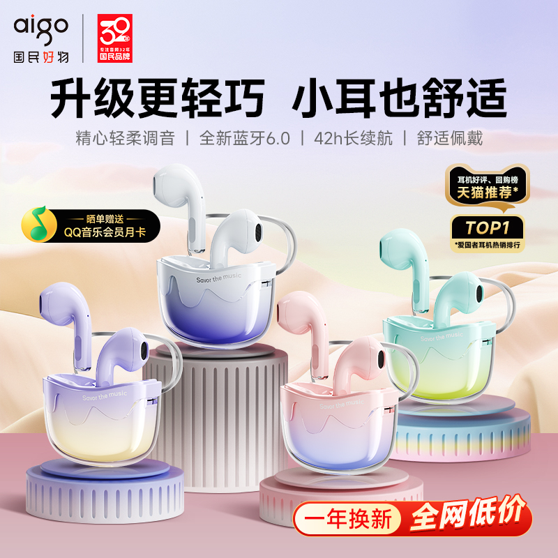 • 泡美丽»»爱国者蓝牙耳机无线2025新款半入耳式长续航女生官方正品降噪运动