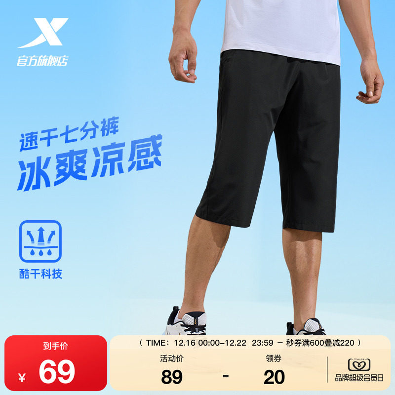特步七分裤男裤2025夏季冰丝速干运动裤跑步健身透气凉爽运动短裤