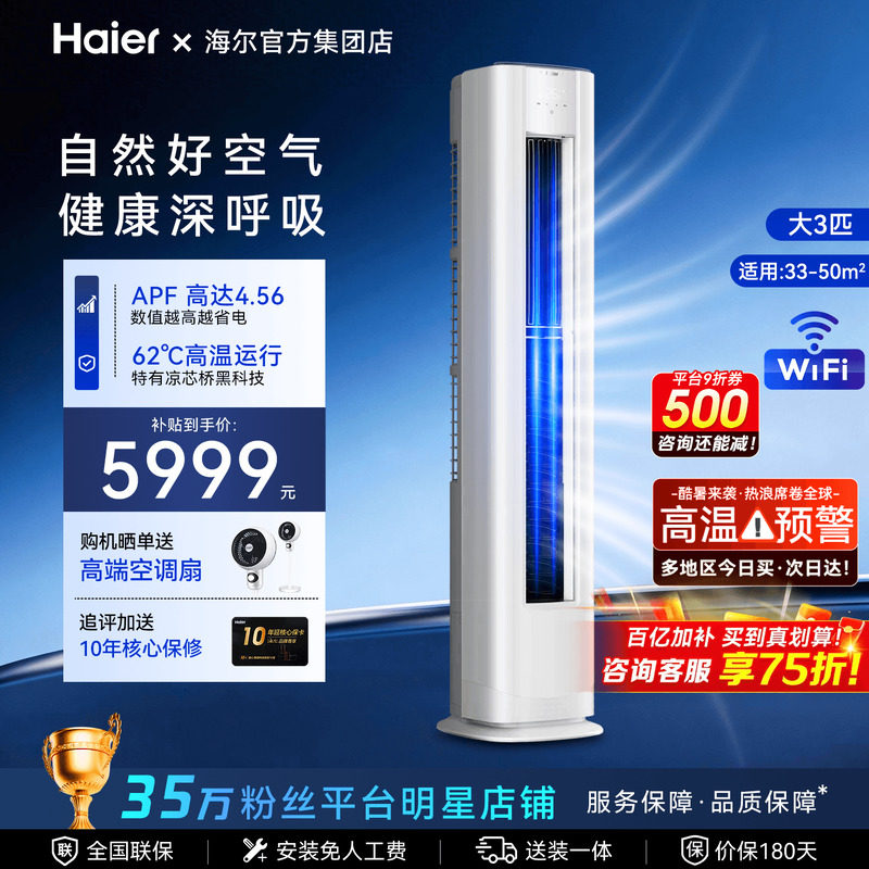• 泡美丽»»海尔空调洗空气麦浪舒享款家用3匹新一级变频新品柜机72E3旗舰店