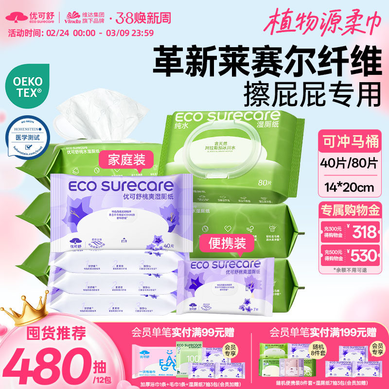 优可舒湿厕纸洁厕湿纸巾擦屁股便携小包家庭实惠装大包湿手纸湿巾