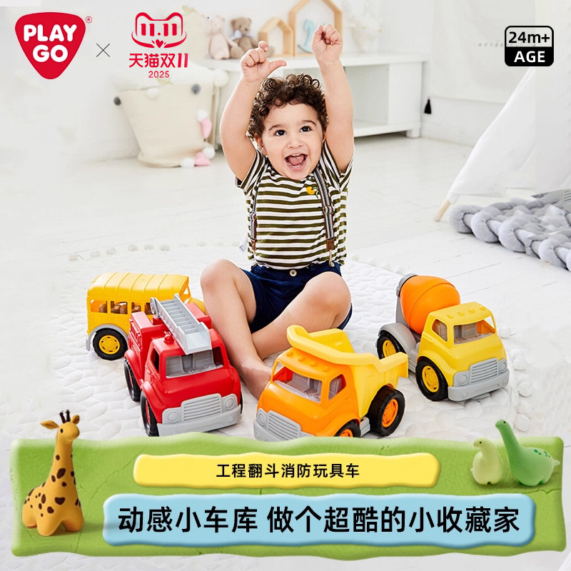 PLAYGO工程车套装儿童惯性车玩具挖掘机铲车宝宝耐摔儿童