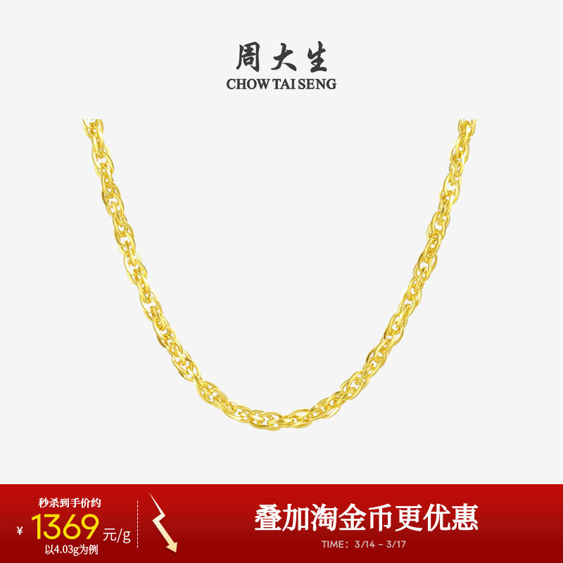 周大生黄金项链女计价足金锁骨链绞丝链百搭吊坠素链金链子送女友