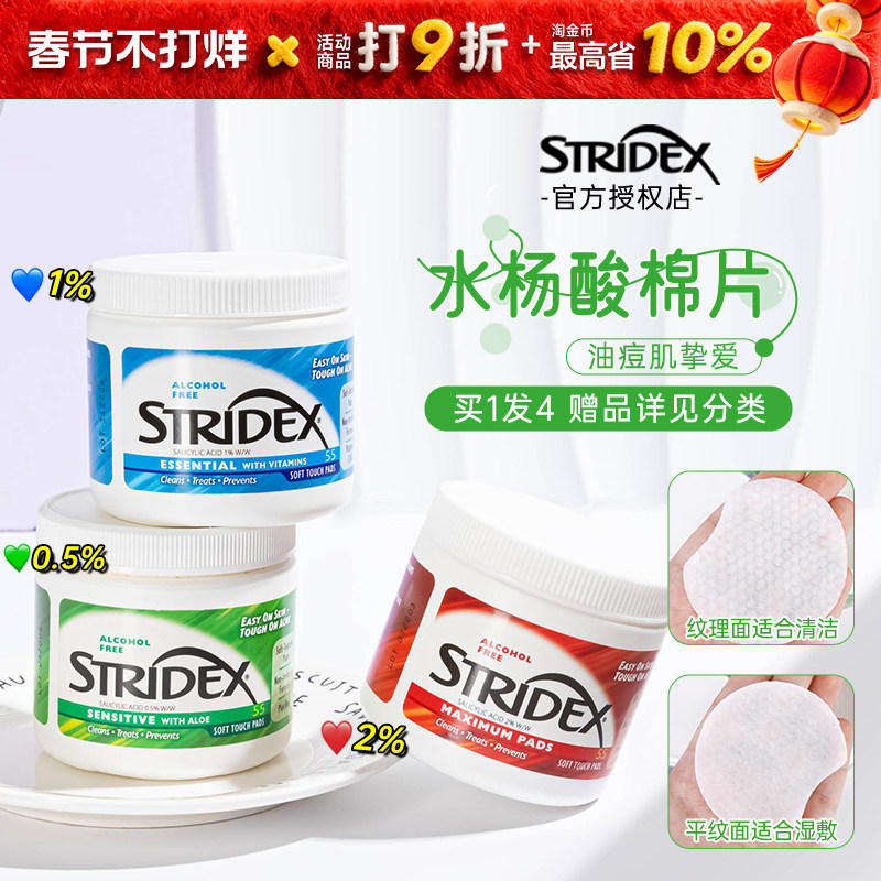 stridex水杨酸棉片湿敷棉痘痘闭口黑头专用酸粉刺清洁正品