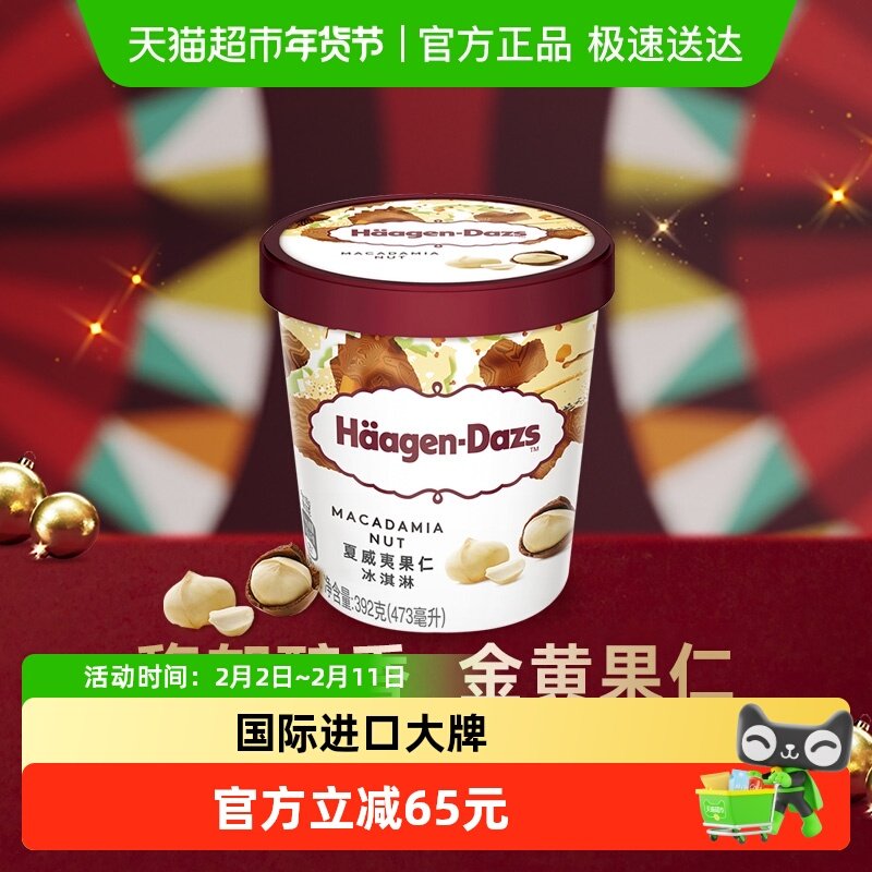 【法国进口】2杯起购 哈根达斯奶油冰淇淋夏威夷果仁味392g雪糕
