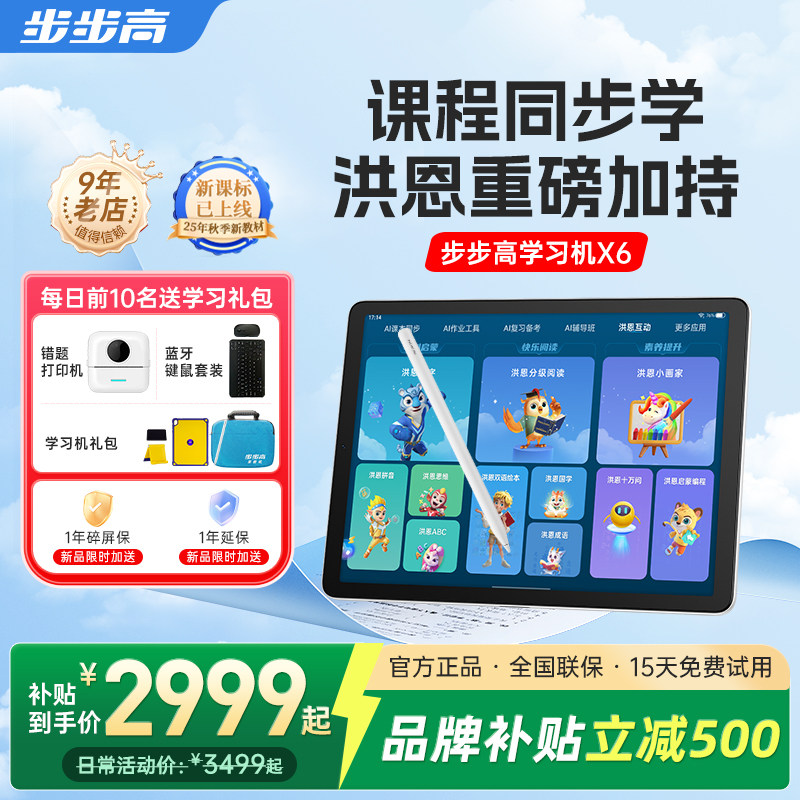 【咨询领惊喜权益】步步高学习机X6早教启蒙洪恩幼小衔接小初高通用智能ai学习平板