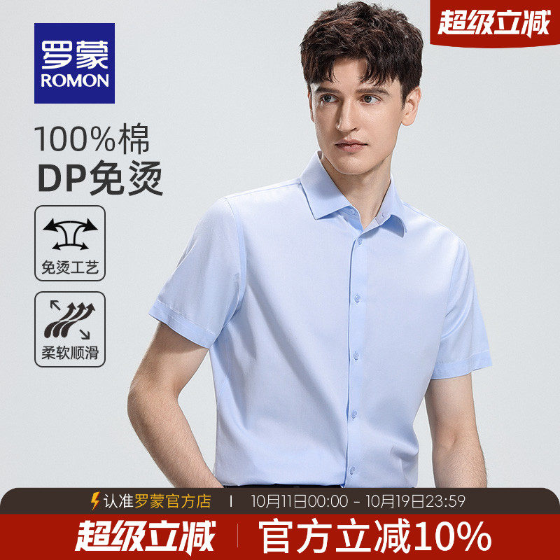 【DP成衣免烫】罗蒙纯棉易打理男士短袖衬衫2025夏季新款商务衬衣