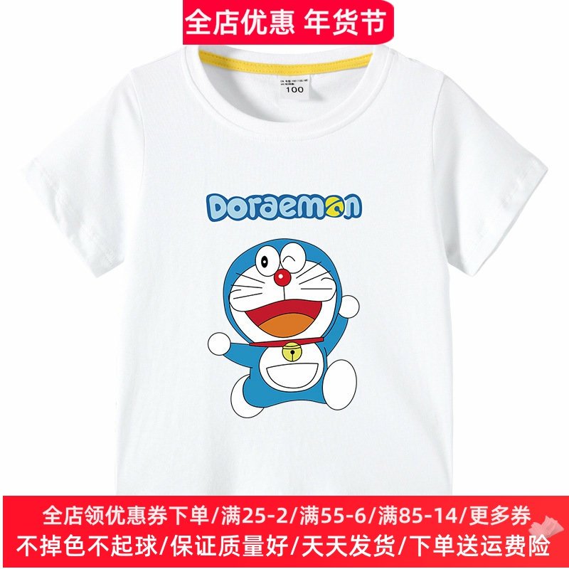 哆啦a梦联名衣服夏装男童t恤叮当猫童装儿童短袖女宝宝纯棉上衣潮