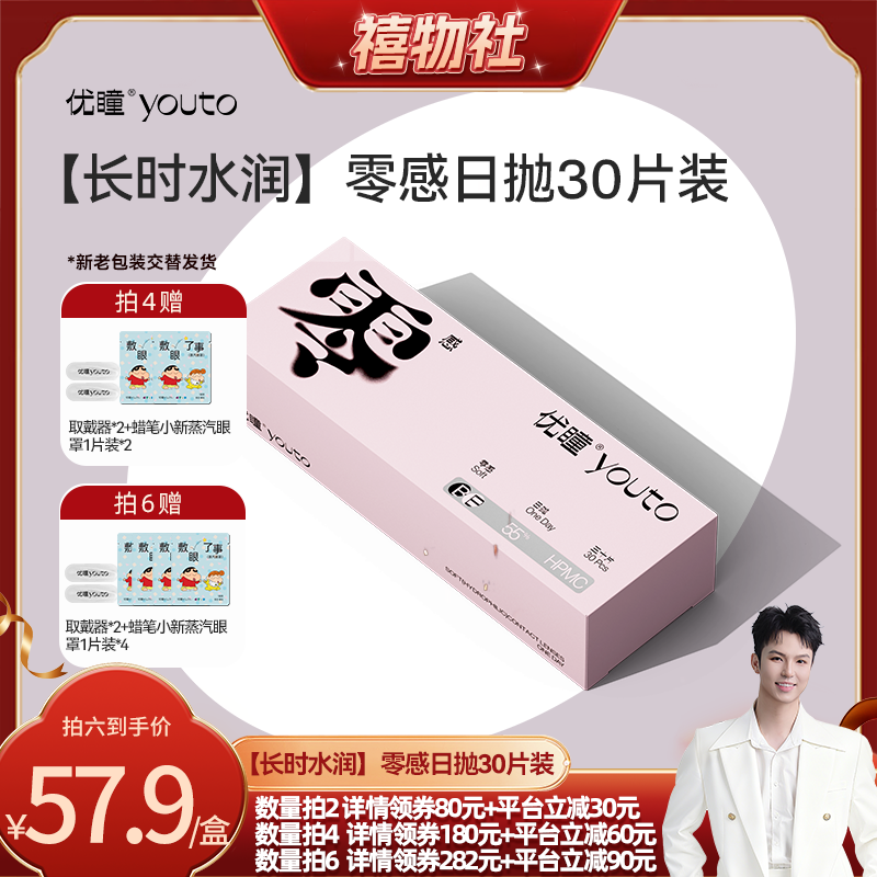 直播【禧物社直播间】优瞳隐形眼镜零感日抛盒55%含水30片专享zb