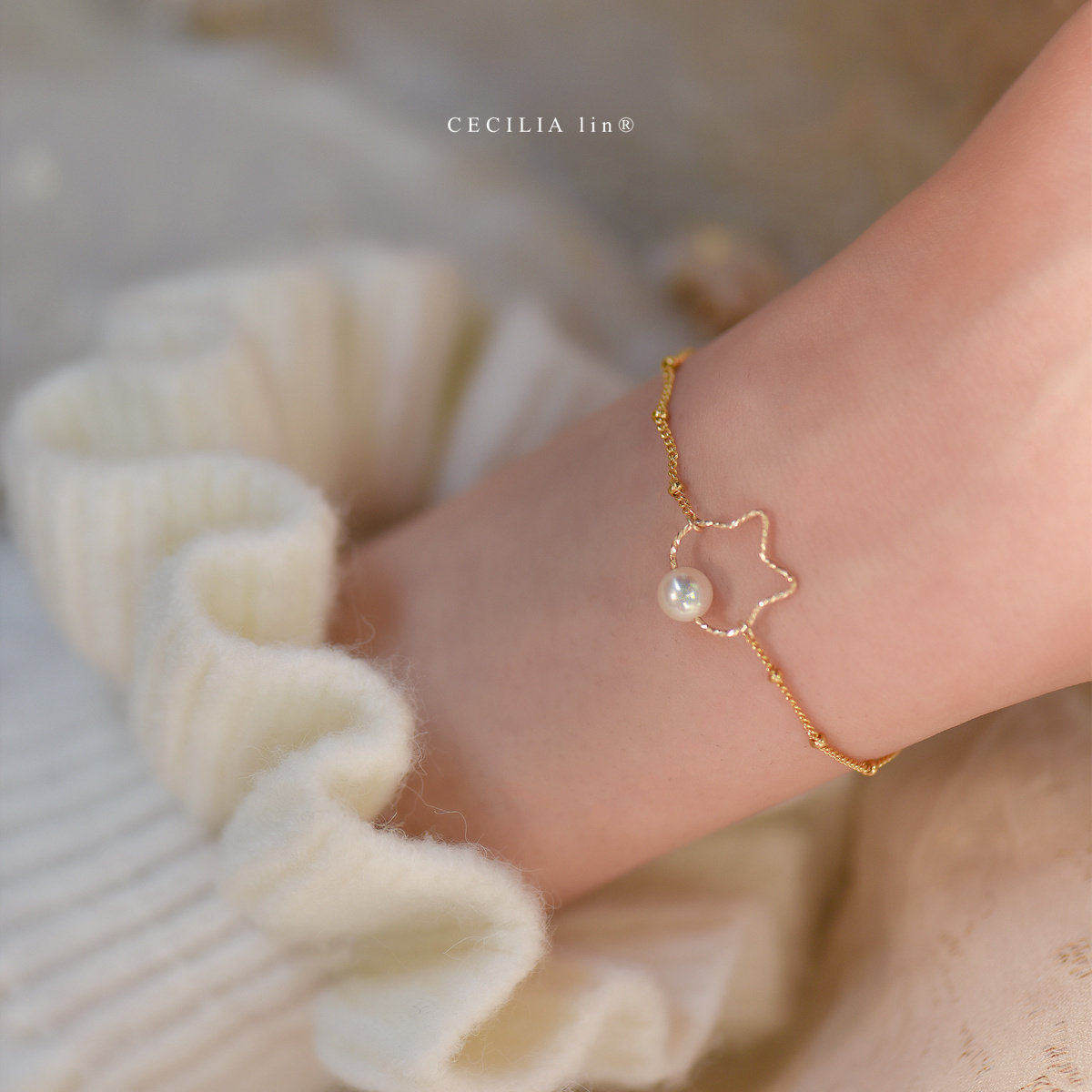 赛赛莉安原创设计猫咪珍珠14K包金手链简约气质小众高级感礼物女