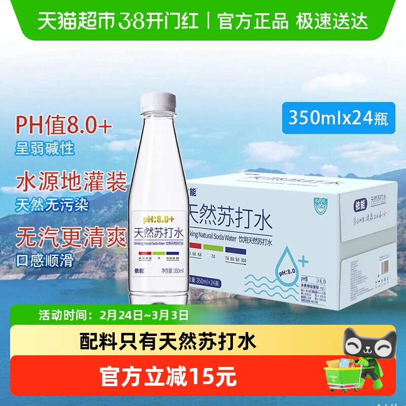 依能饮用天然苏打水整箱小瓶弱碱性水非矿泉水无糖无气瓶装