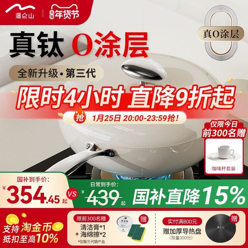 Velosan温仑山钛0涂层炒锅无涂层不粘锅家用燃气陶瓷鹅卵石炒菜锅