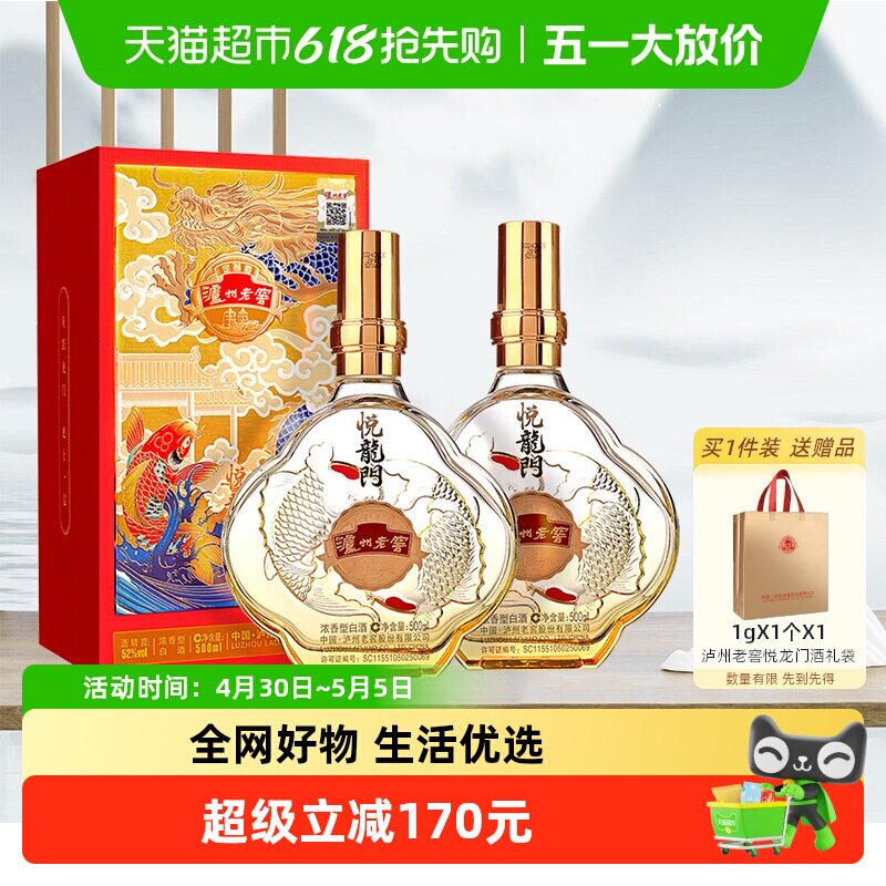 泸州老窖定制酒悦龙门52度浓香型白酒宴请送礼酒500ml*2瓶