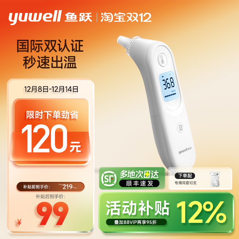 鱼跃耳温枪电子体温计无水银医用家用高精准老人婴儿童专用YHT101