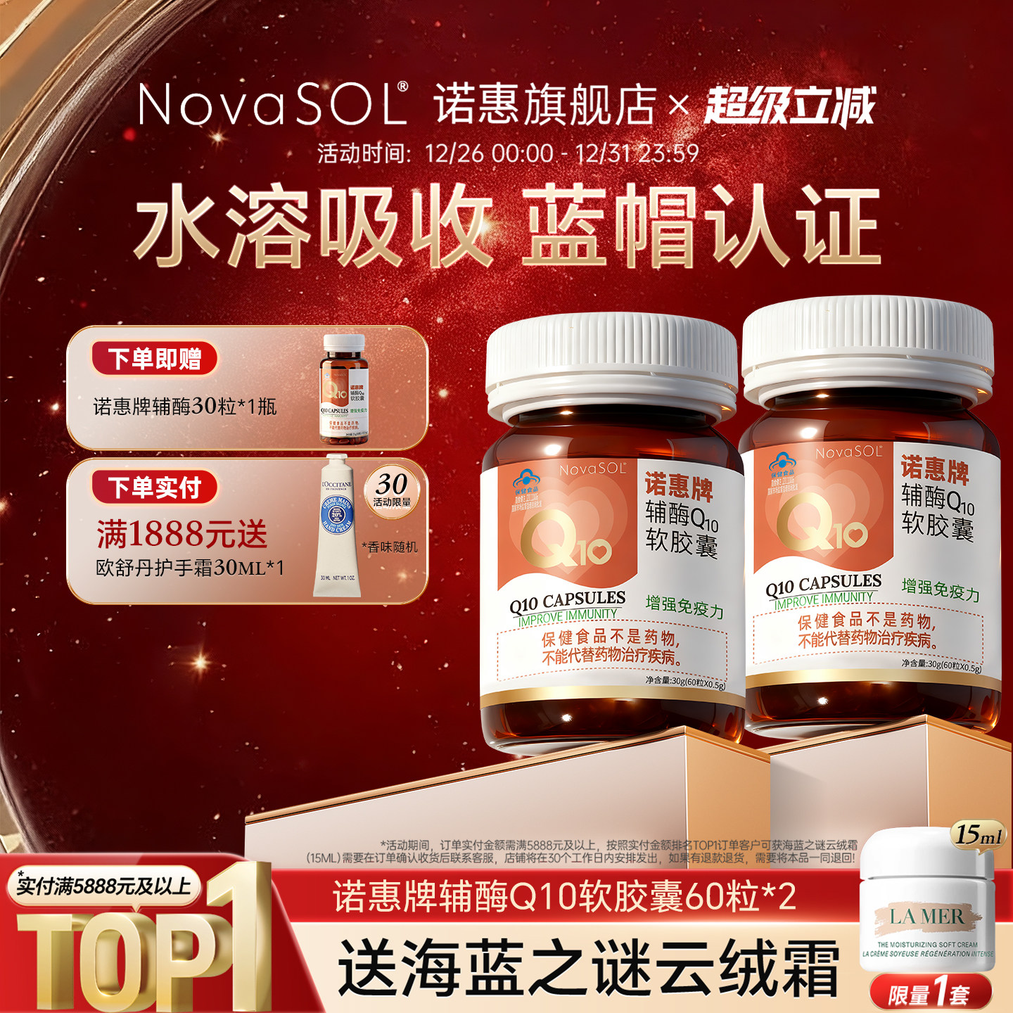 【爆款套组】诺惠牌辅酶Q10软胶囊德国原装进口心脏正品60粒*2瓶