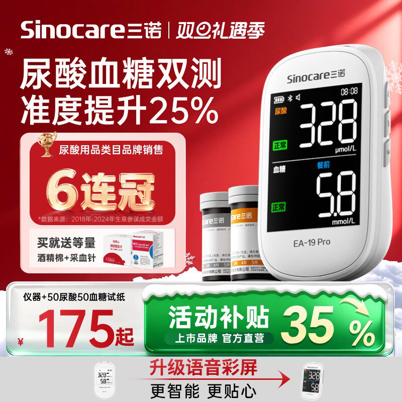 三诺EA-19尿酸检测仪血糖双功能测试仪家用医用标准痛风自查尿酸