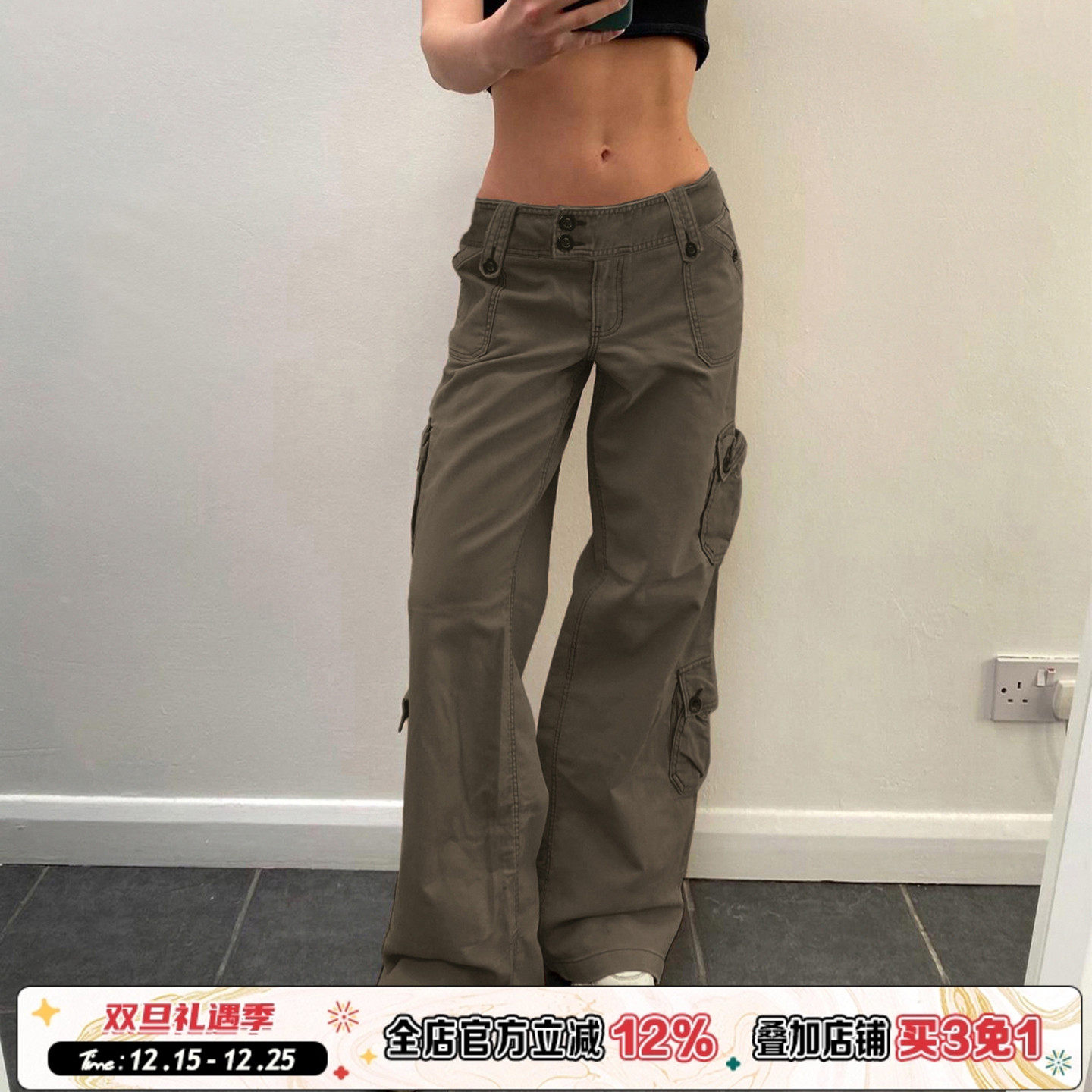 ROCKMORE【美式基础】做旧灰色宽腰设计休闲裤 多口袋阔腿工装裤