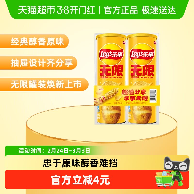 【王鹤棣推荐】乐事无限罐装薯片组合(原味/黄瓜/番茄)零食膨化