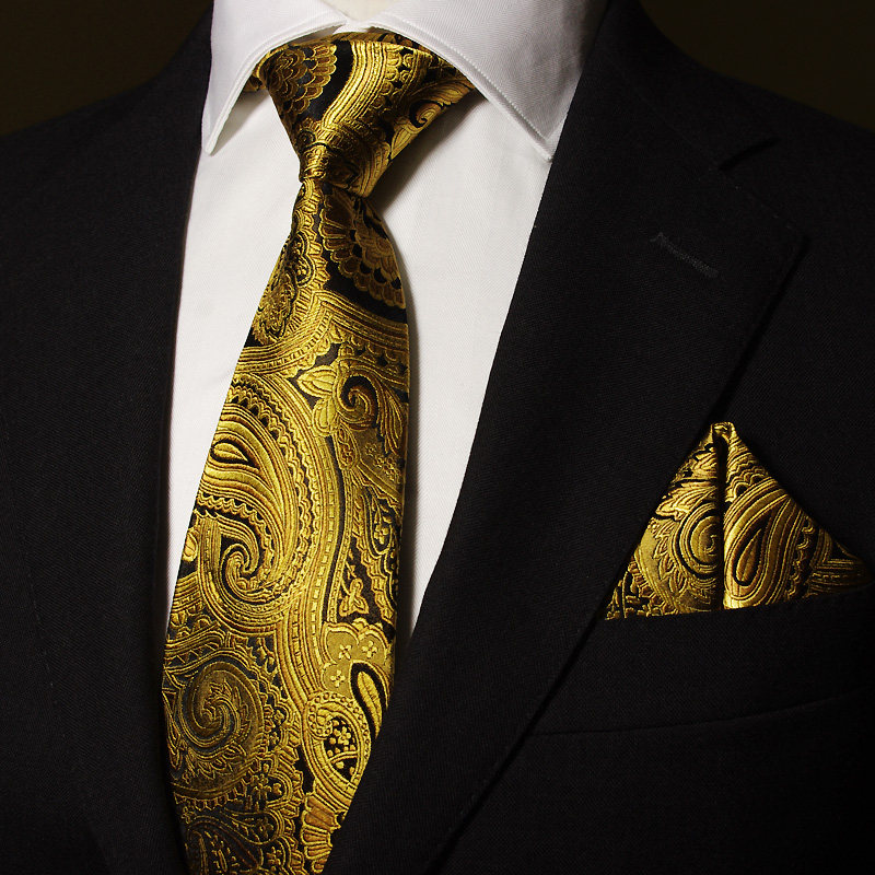 Ptah Atum 正装领带 真丝领带三件套男 金色花纹正装商务结婚领带
