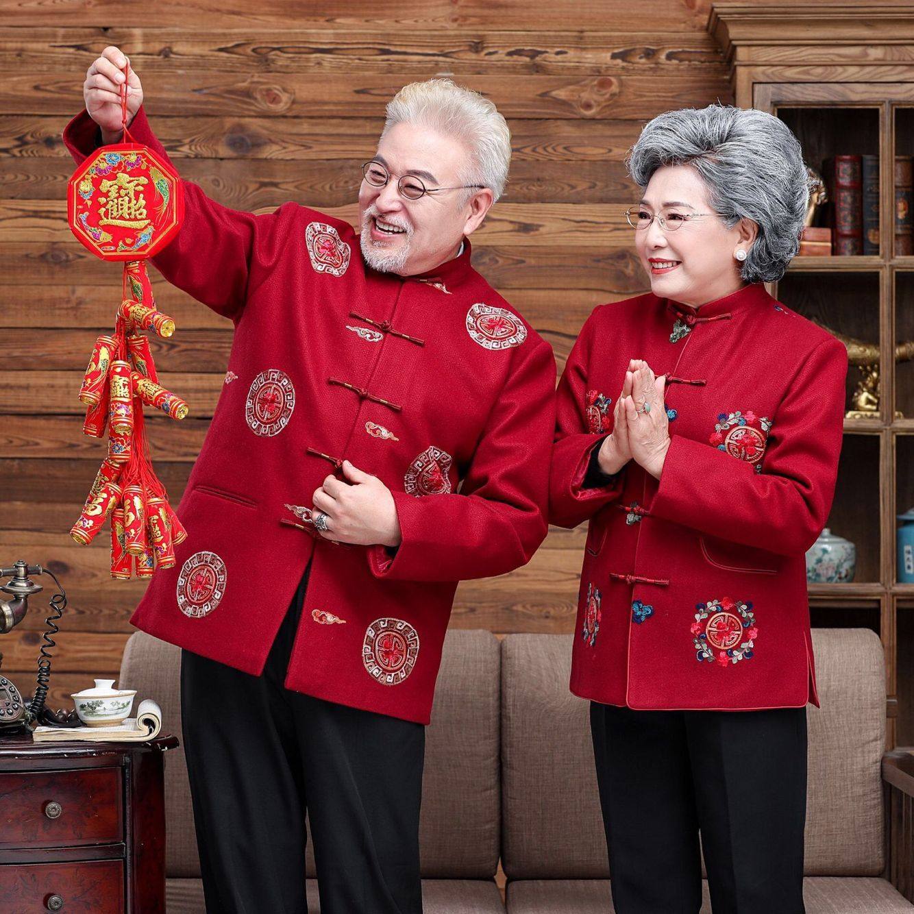 爷爷奶奶中国风冬季情侣装中老年男女过寿宴爸爸加厚冬装唐装外套