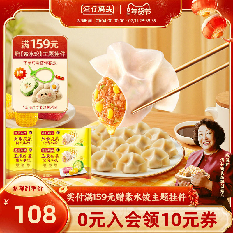 湾仔码头水饺玉米三鲜白菜猪肉720g*4袋煎饺早餐速冻饺子