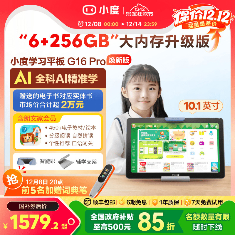 【全国补贴15%】小度智能学习平板G16 Pro 焕新升级内存AI小度学习机一年