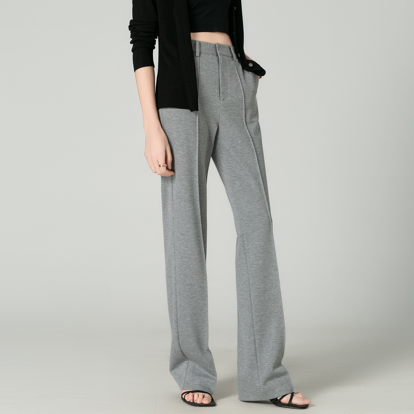 后松紧腰立体中缝西装运动裤女早秋针织直筒裤窄版阔腿长裤子糯米