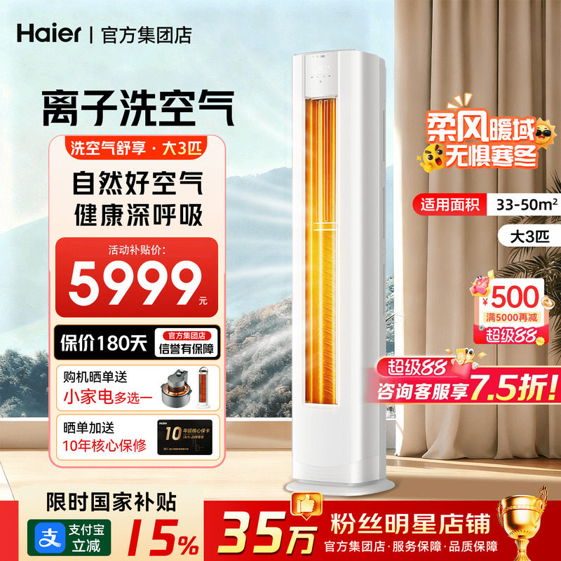 【麦浪】海尔洗空气空调家用2匹3匹一级能效变频客厅立式柜机72E3
