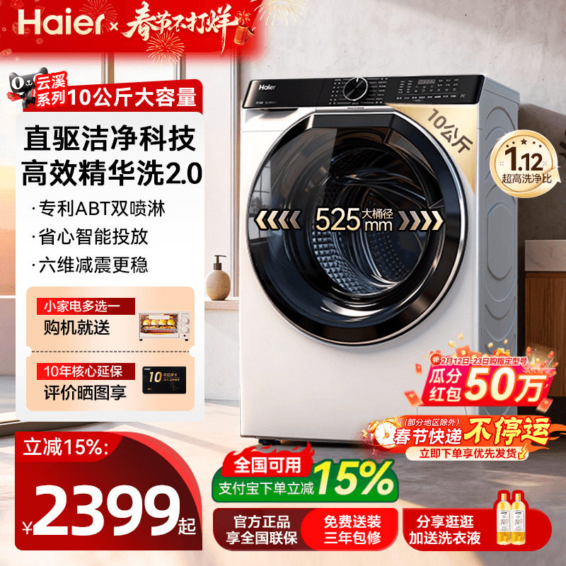 【云溪3.0】海尔579滚筒洗衣机直驱精华洗10公斤家用超薄77E旗舰