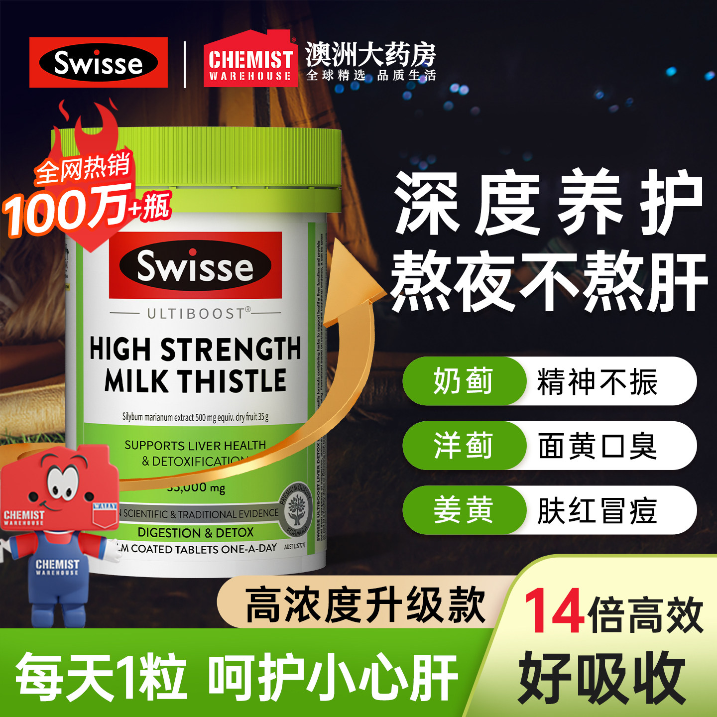 swisse护肝片正品官方旗舰店斯维诗奶蓟草蓟类水飞蓟男性解酒熬夜