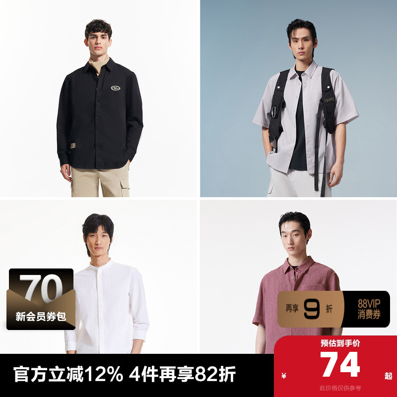 【衬衫清仓】杰克琼斯男装奥特莱斯男士休闲商务长袖短袖衬衫