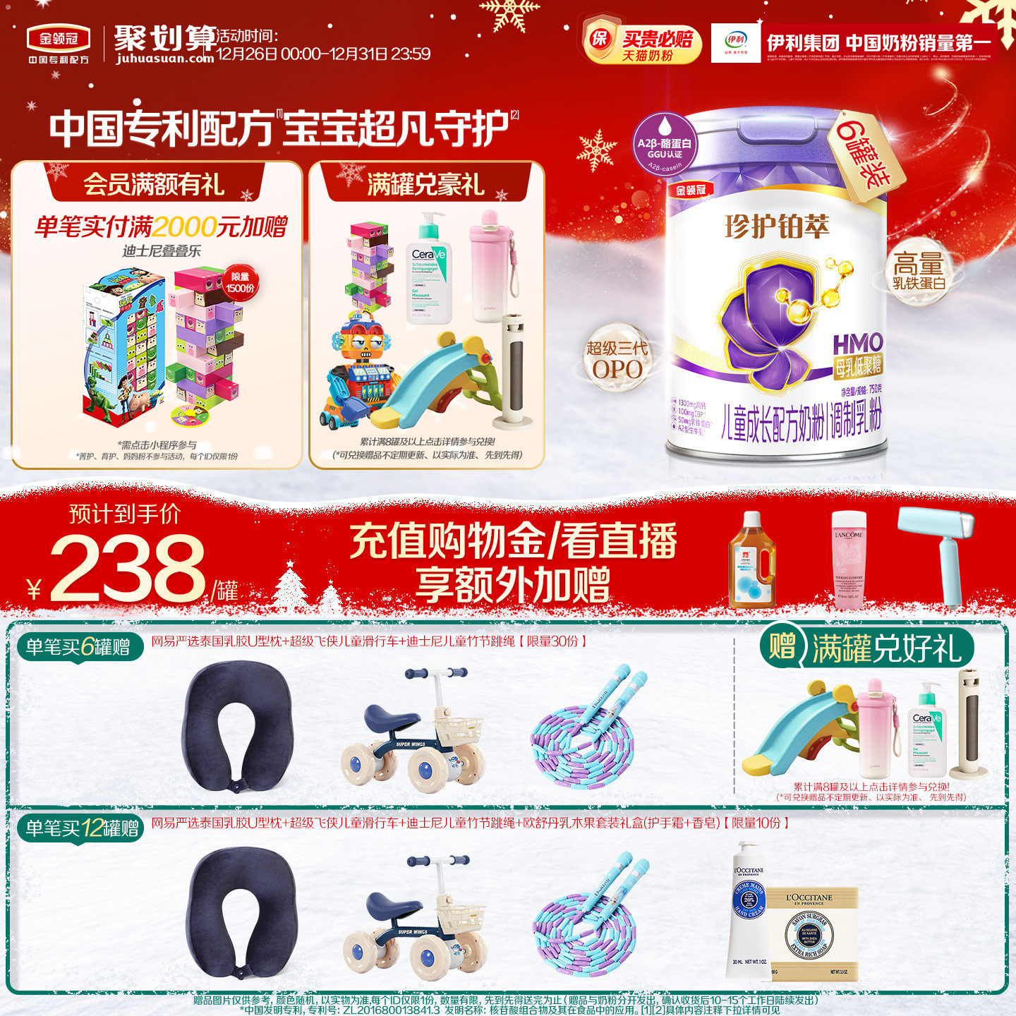 【全面营养】伊利金领冠珍护铂萃4段3岁以上儿童成长牛奶粉750g*6