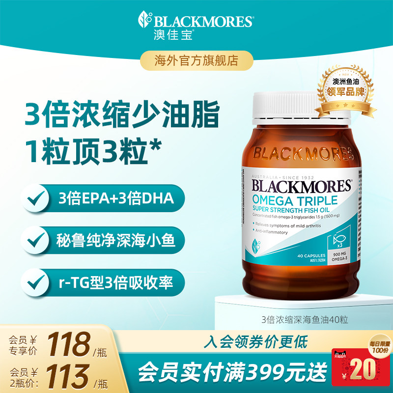 澳佳宝BLACKMORES3倍omega3高浓缩dha深海鱼油40粒官方旗舰店正