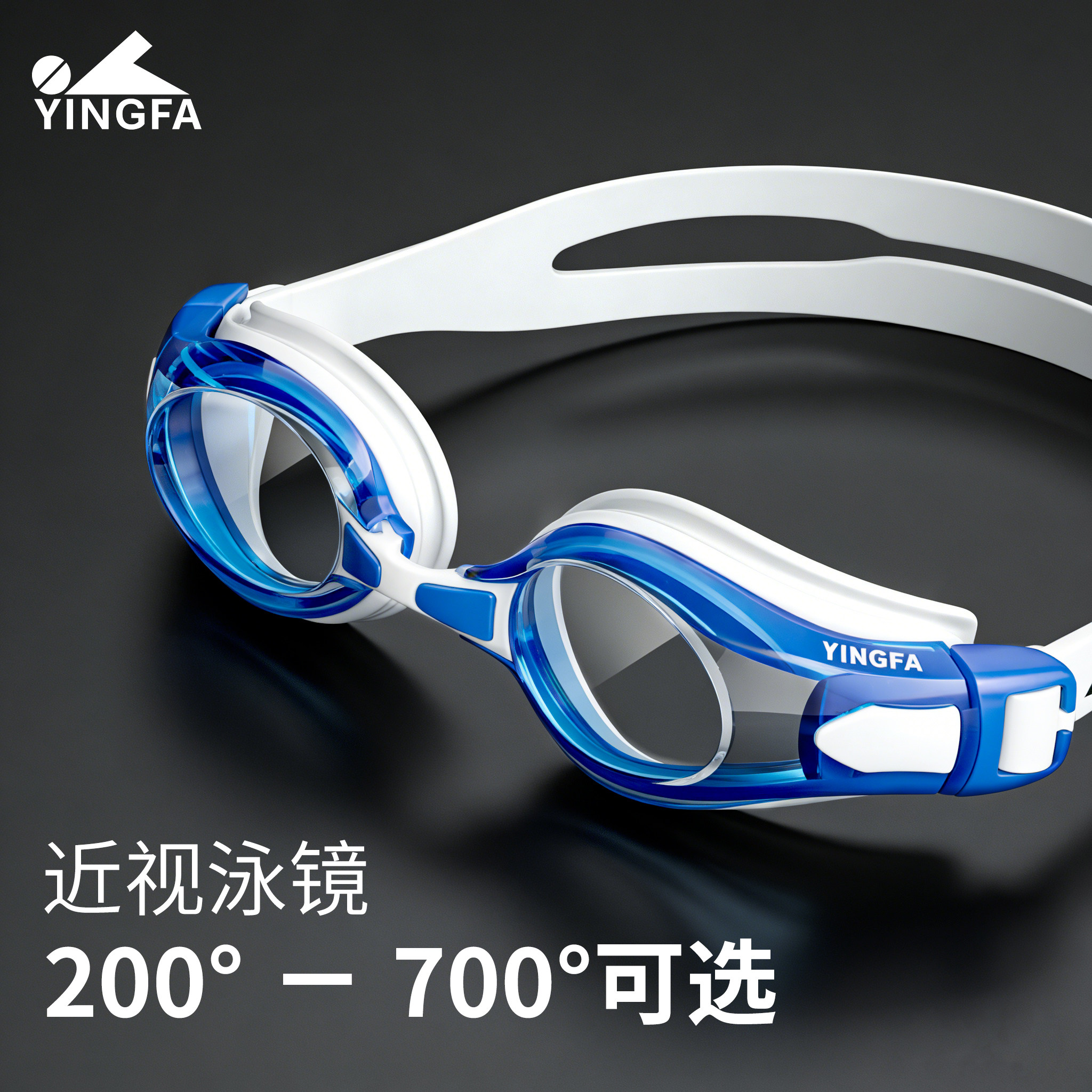 英发近视泳镜男女通用防水防雾游泳镜大框青少年可选度数高清泳镜