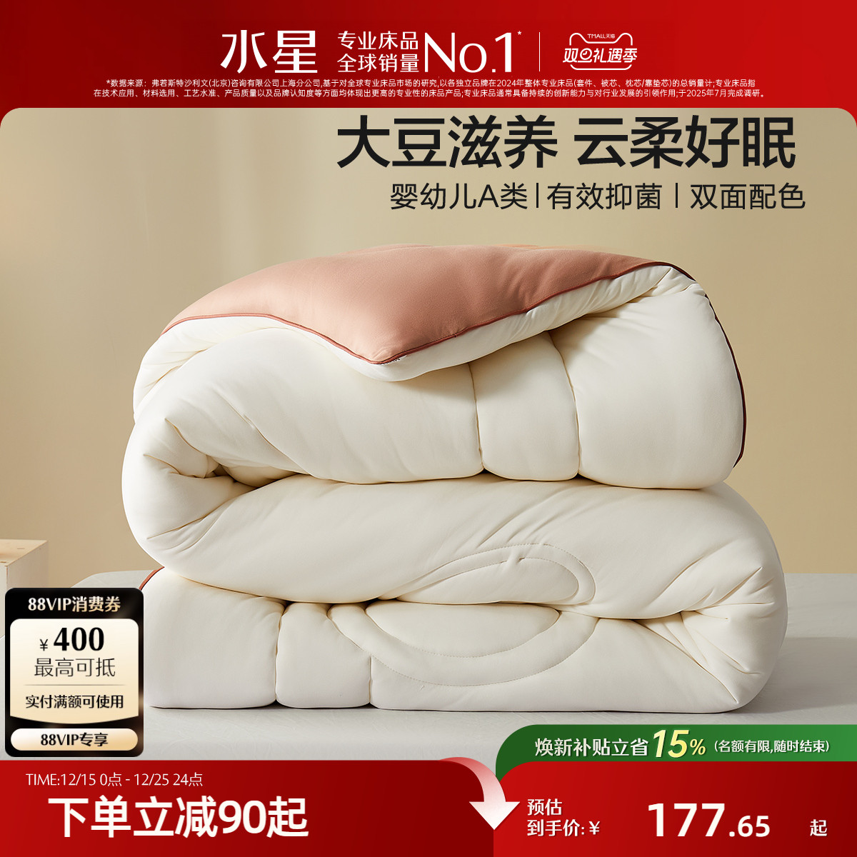 水星家纺床品抑菌大豆冬被保暖被子学生宿舍被芯四季被二合一被