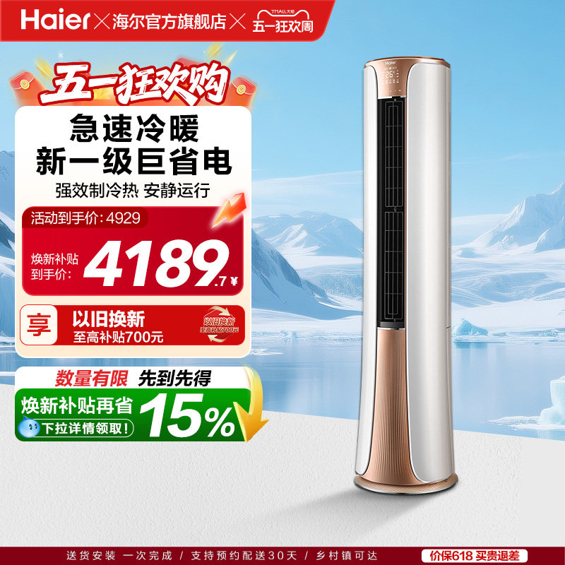 • 泡美丽»»海尔静悦官方新一级能效2匹变频冷暖客厅家用立式柜机空调50kca