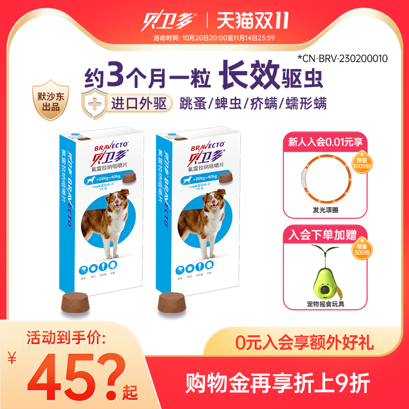 贝卫多狗狗驱虫药口服颗粒体外驱虫药去跳蚤蜱虫大型犬专用药2盒