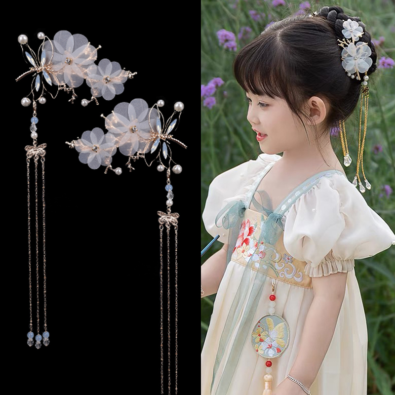 儿童汉服头饰古风超仙蜻蜓流苏发夹步摇发簪配饰古装对夹发饰饰品