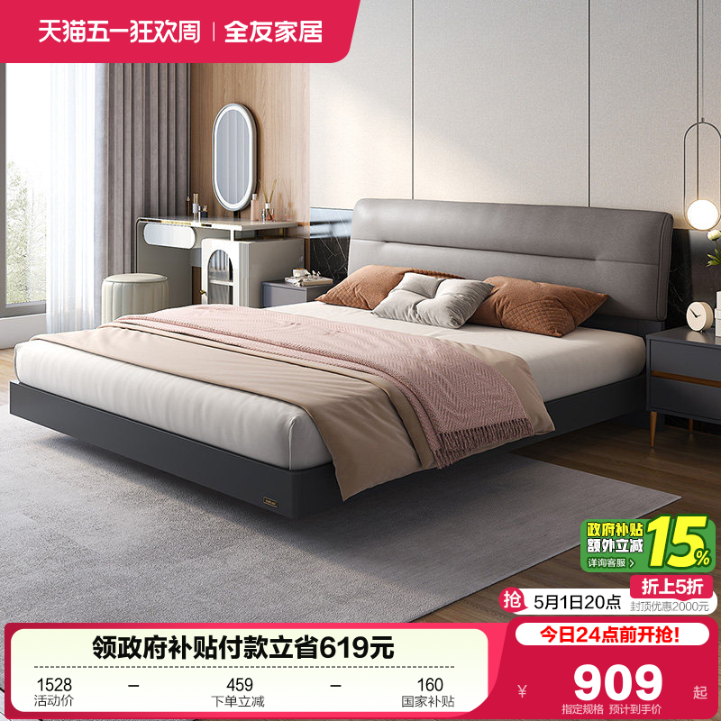 全友家居现代简约软包板式床1米8主卧床收纳储物床轻奢双人大床