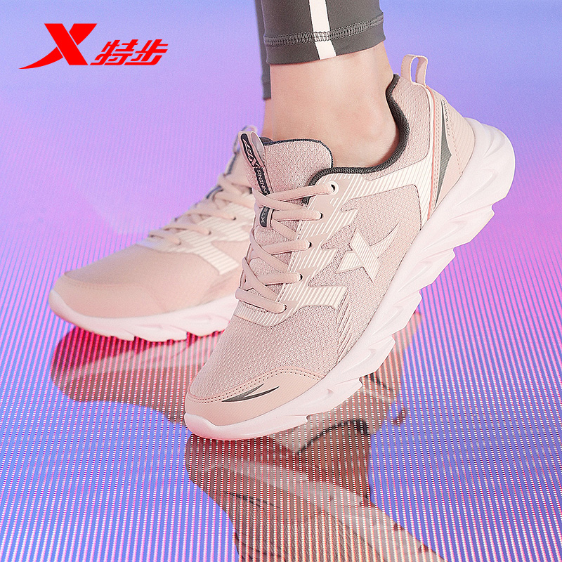 特步运动鞋女鞋冬季新款网面轻便皮面防泼水软底妈妈减震跑步鞋男