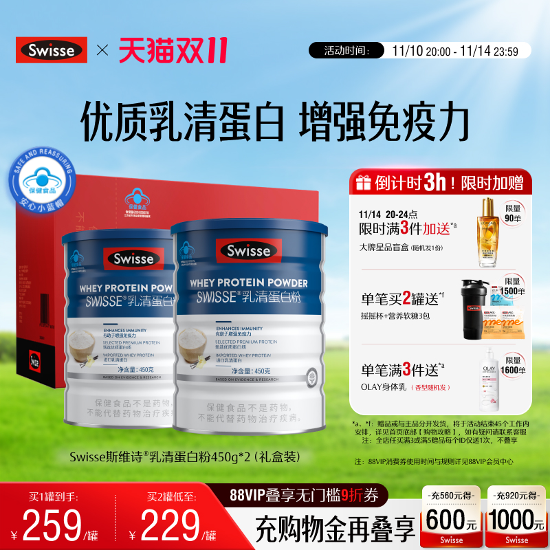 • 泡美丽»»【双11后3h】Swisse斯维诗乳清蛋白质粉中老年增强免疫力男女